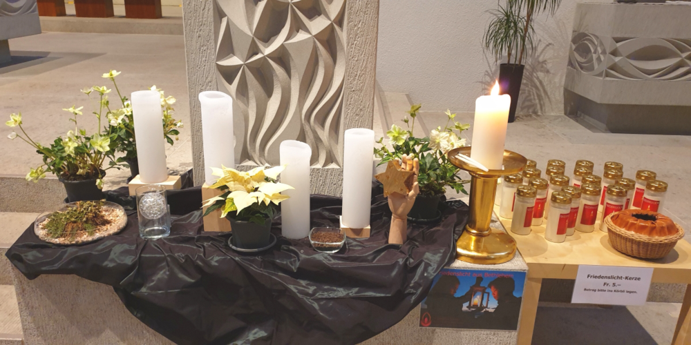 Am Schluss der Feier kann jede Familie das Friedenslicht von Bethlehem nach Hause tragen.