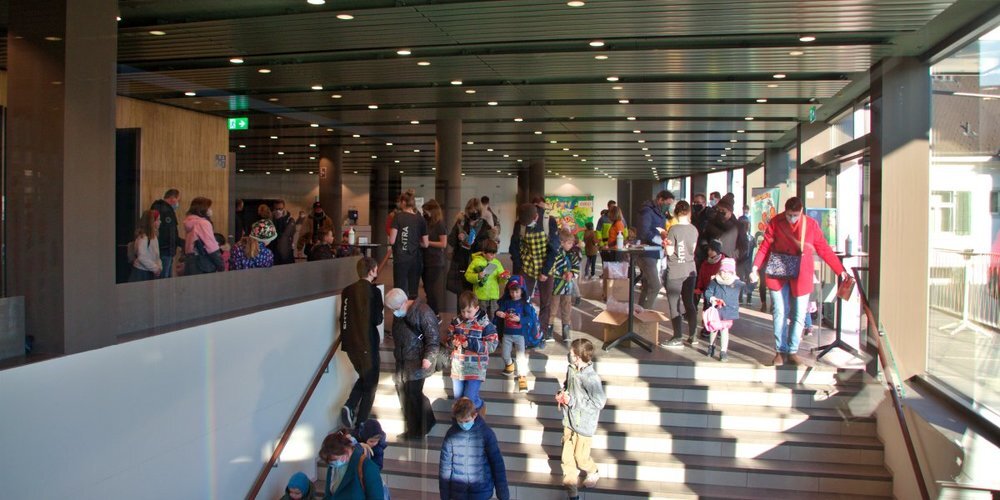 Insgesamt herrscht eine angenehm lockere Atmosphäre. Das einladende Foyer, die modernen Grautöne der Wände, sowie der helle Parkettboden heissen den Besucher willkommen und übermitteln ein heimeliges Ambiente. Auch die Akustik des Saals lässt nichts zu wünschen übrig. Die Töne von Kinderliedern, begleitet vom Klavier, hallen bis in alle Ecken des Saals. All dies wirkt auf die Zuschauer sehr einnehmend und unterstützt die Darbietung.