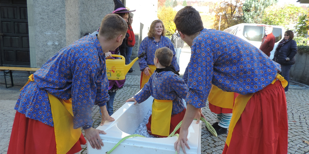 Die Buchwaldhexen pflegen am 11.11. auch die Tradition der Kästeilet. Mit dem Martinstag endete das bäuerliche Wirtschaftsjahr, denn die Ernte war dann einge-bracht. Am Zinstag wie man den Martinstag auch nannte, wurde ein Festmahl auf dem Hof zubereitet. Die Schlachtungen begannen anfangs November schon. Der Hauptgang war meist ein Gänse- oder Schweinebraten. In Überlieferungen liest man, dass die ärmsten Mitbürger und Bettler mit Käs und Brot vom Hof abgehalten wurden. Vor vielen Jahren, zur Blütezeit der Fasnacht in Uznach haben zwei eingefleischte von der damaligen Fasnachtszunft Uzinaha den alten Brauch wieder aufleben lassen. So wird immer am 11.11. Käs und Brot an Freunde und Gönner der Buchwaldhexen abgegeben. Der sonnige Sonntagmorgen lockte dieses Jahr überaus viele Fasnachtsfreunde auf den Kirchplatz, die sich über den gratis "Znüni" freuten.