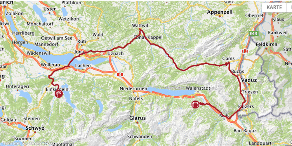 Von Einsiedeln geht es über den Zürichsee nach Rapperswil, von da via der höchst gelegenen Gemeinde des Kanton St. Gallen zwischen Säntis- und dem Churfürstenmassiv nach Sargans. Das Ziel der 6. Etappe trohnt über dem Walensee auf dem Flumserberg. 1995 konnte hier der italienische Bergfloh Marco Pantani vor dem imposanten Bergpanorama jubeln und auch in diesem Jahr wird das Tour de Suisse Gesamtklassement hier erste Form annehmen.