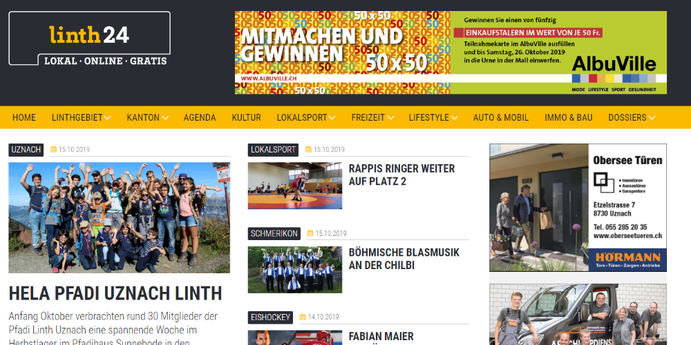 Ämter, Parteien, Polizei, Sport- und Freizeitvereine beliefern heute die Linth24 Redaktion selbstverständlich mit ihren Meldungen. Lokale Firmen und Geschäfte, regionale Veranstalter und Anbieter publizieren ihre Werbung heute auf Linth24 und haben mit unserer Verkaufsabteilung einen jederzeit erreichbaren Ansprechpartner.