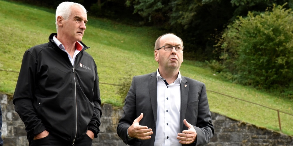 • Markus Lauener (Obmann ESV, links) im Gespräch mit Regierungsrat Kaspar Becker. Bild: Linth24