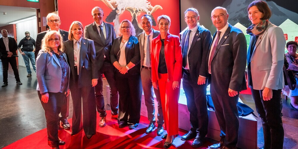 Bundespräsidentin Karin Keller-Sutter (4.v.r.) mit St.Galler und Walliser Politikern. Bild: Michael Huwiler