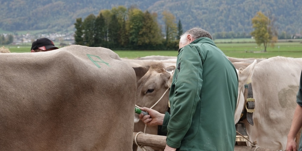 • Ein letzter Blick des Experten, dann folgt der Buchstabe auch den Kuh-Hintern. Bild: Markus Arnitz, Linth24