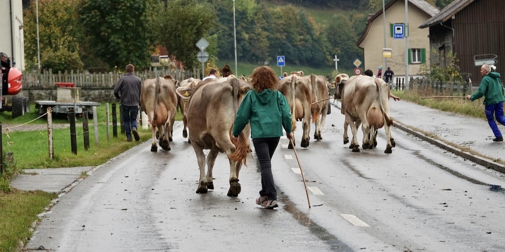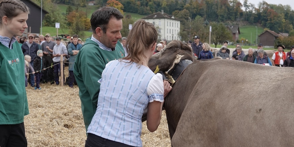 Kurz nach der Siegerehrung, setzten sich die geschmückten Kühe in Bewegung. Glocken dröhnten durch das Tal, Blumenkränze wehten im Wind. Ein Bild, das den Abschluss einer intensiven Schau- und Zuchtsaison markierte.
