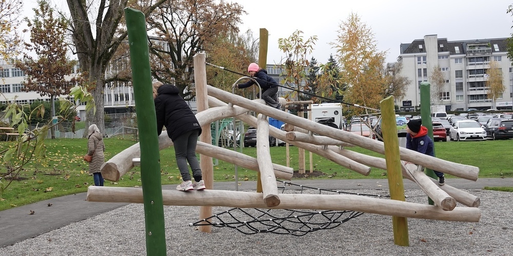 Was vorher ein in die Jahre gekommener, liebloser Spielplatz war, zeigt sich nun als ein Ort, der Bewegung, Begegnung und Erholung vereint. Durch neue Spiel- und Sportgeräte, kreative Elemente und das integrative Hopp-La-Gerät entstand ein Platz, der zum Spielen, Toben, aber auch zum Verweilen einlädt. Die zusätzliche Begrünung, der Einbezug der südlichen Spielwiese und ein neuer Brunnen geben dem Tüchelweier ein frisches, lebendiges Gesicht.