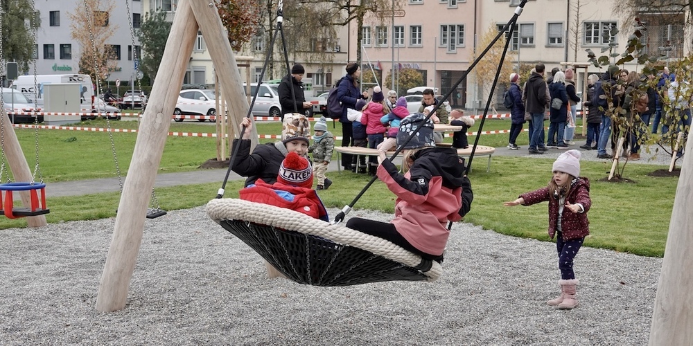Am Samstag, 8. November 2025, wurde der neue Spiel- und Begegnungsplatz Tüchelweier feierlich eröffnet. Pünktlich um 13.30 Uhr strömten Familien, Kinder, Spaziergängerinnen und Neugierige auf das frisch gestaltete Areal. Der Duft von Marroni und heissem Punsch lag in der Luft, während Stadtrat Johannes Kunz die Gäste mit einer herzlichen Rede begrüsste.