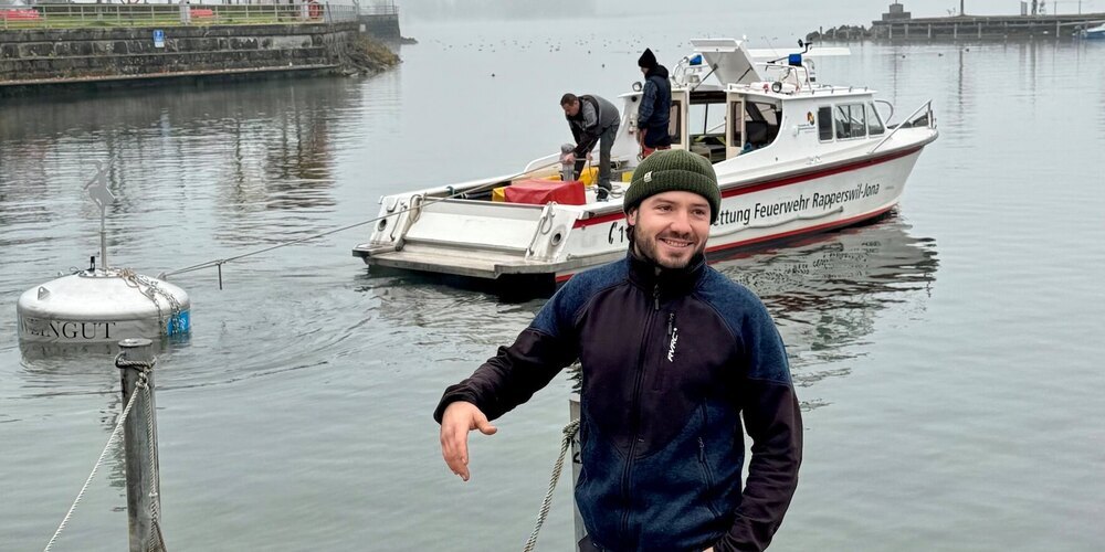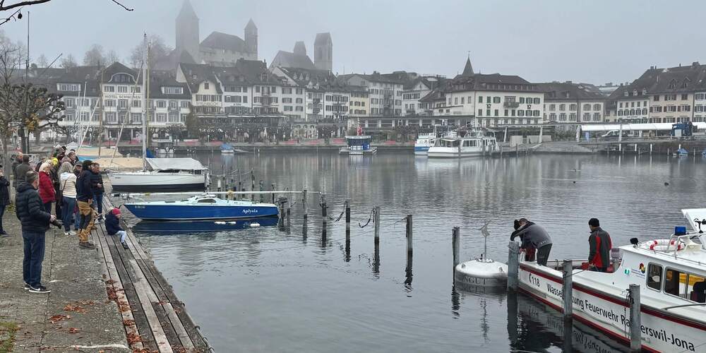 Eine stattliche Anzahl warm angezogener Interessierte verfolgten kürzlich die Wasserung der 1'000-Liter-Boje. Diese wurde mittels Lastwagenkran beim Fischmarkplatz ins Wasser gesetzt und anschliessend von den Männern der Wasserrettung Rapperswil-Jona mit ihrem Boot durch den Hafen gezogen und an einem der freien Bootsplätze an der Hafenmole gut vertäut. Die Boje ist gesichert mit Ketten und einem GPS-Tracker.