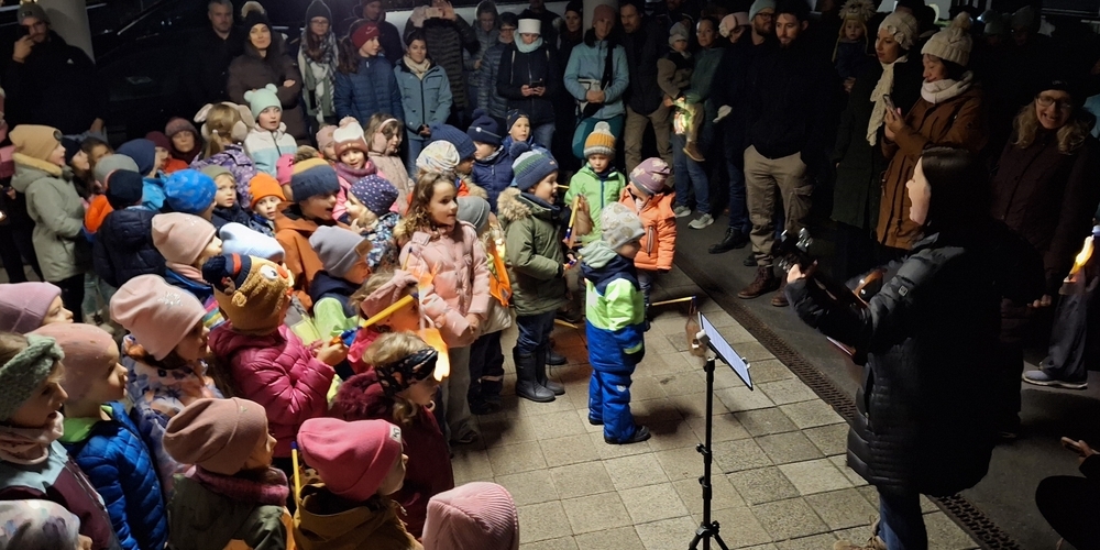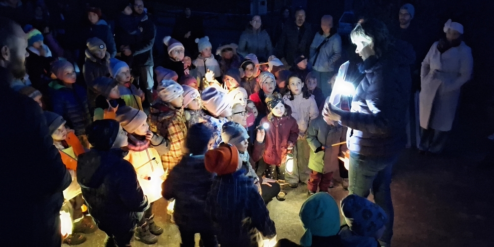 Unterwegs wurde den Kindern bei zwei Zwischenhalten die Geschichte von St. Martin erzählt. Immer wieder hörte man die Kinderstimmen unterwegs ihr Laternenlicht besingen.
