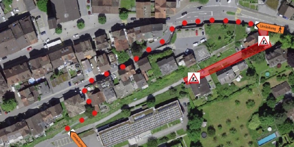 Karte mit der Fussgängerumleitung während der Baustellenzeit.
