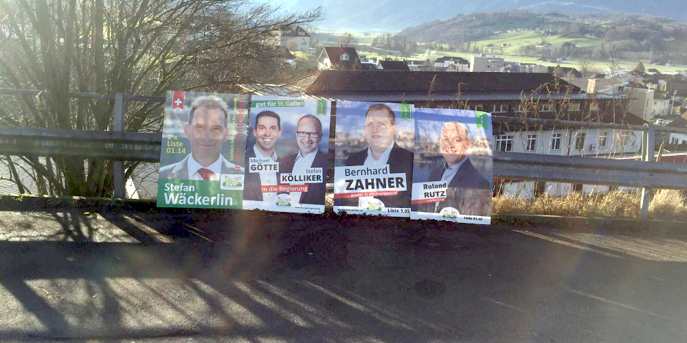 Die SVP Plakate stehen seit letzten Samstag 01.02. in Rapperswil-Jona, Eschenbach, Gommiswald, Rieden, Kaltbrunn, Schänis, Amden. Weitere Gemeinden werden folgen.