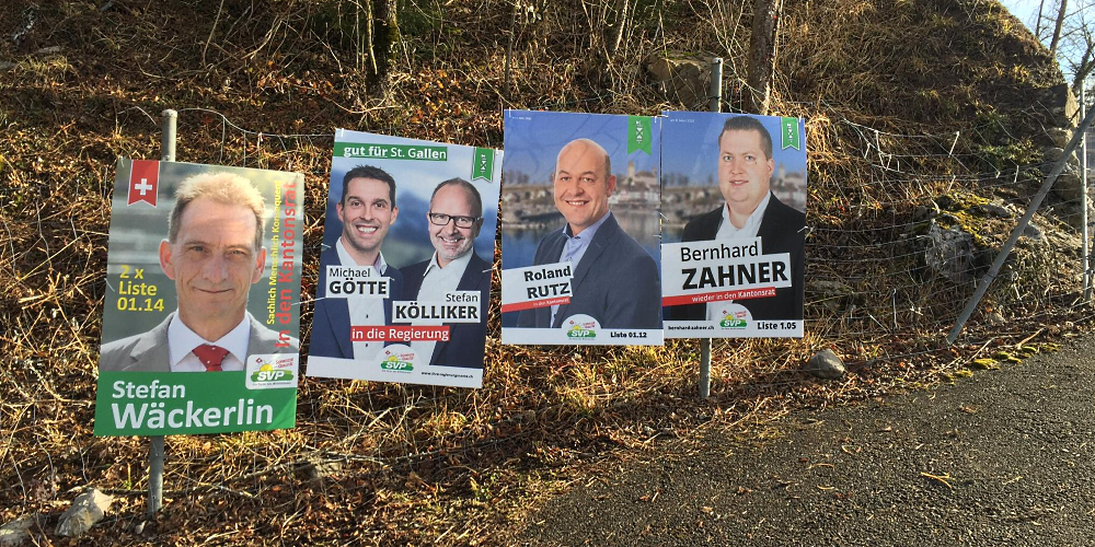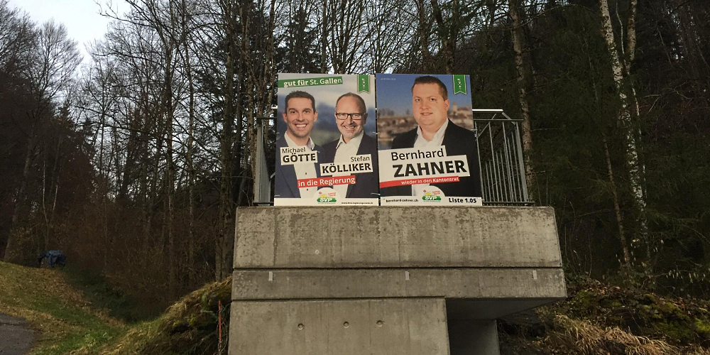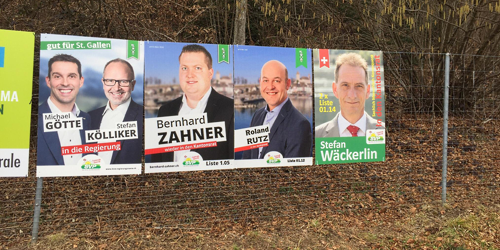 Im Gegensatz zu den anderen Parteien haben wir den Kandidaten die freie Wahl gelassen ob und wie Sie im Wahlkampf Plakate einsetzen wollen. Wieso ist die SVP noch nicht so präsent? Weil wir grundsätzlich bis nach den kant. und eidg. Abstimmungen (teils kommunale Wahlen) vom kommenden Sonntag warten wollten um beim Wähler keine Verwirrung zu schaffen, weil dort keine Kantonsrats-Wahlen Unterlagen dabei sind.»
