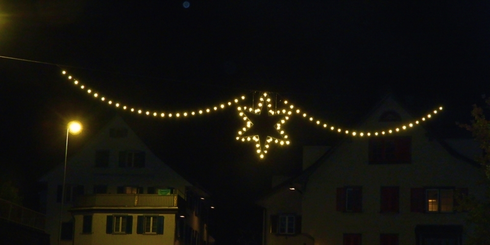 Seit wenigen Tagen verkündet die Weihnachtsbeleuchtung im Städtchen Uznach die Adventszeit mit ihrem besonderen Lichterglanz. Die Weihnachtsbeleuchtung in Uznach wird jeweils vor dem traditionellen Klausmarkt montiert. Dafür sind der Verein «Gewerbe Uznach» und das EWU seit vielen Jahren zuständig, mitfinanziert durch die Gemeinde. In der Strassenmitte hängt ein grosser Stern, ergänzt durch eine Lichterkette. Auf den Zufahrtsstrassen leuchten kleinere Sterne in den Nachthimmel.