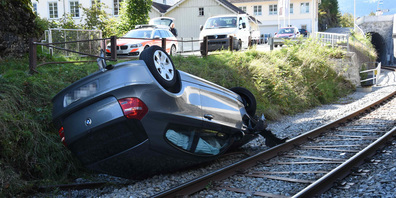 Am Donnerstag ist eine 20-Jährige mit ihrem Auto auf der Tempelbrücke in Krummenau verunfallt. Das Auto kam von der Strasse ab und landete auf den Bahngleisen.