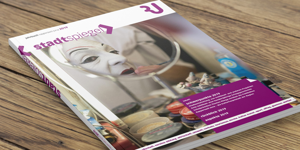 All dies und einiges mehr lässt sich im „Stadtspiegel“ 2019 nachlesen. Das Redaktions- team des „Stadtspiegels“ hat auch für diese Ausgabe eine Auswahl an Geschichten zu- sammengestellt, die das facettenreiche Leben in der Stadt Rapperswil-Jona wiedergibt.